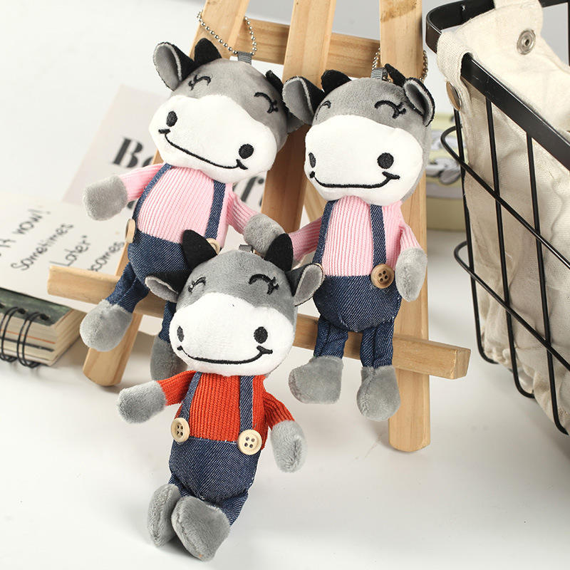 2025 Cute Cow Plush Toy in Denim Overalls & Knit Shirt Adorable Gray Stuffed Cow with Pink/Red Top Ideal Keychain Gift for Kids