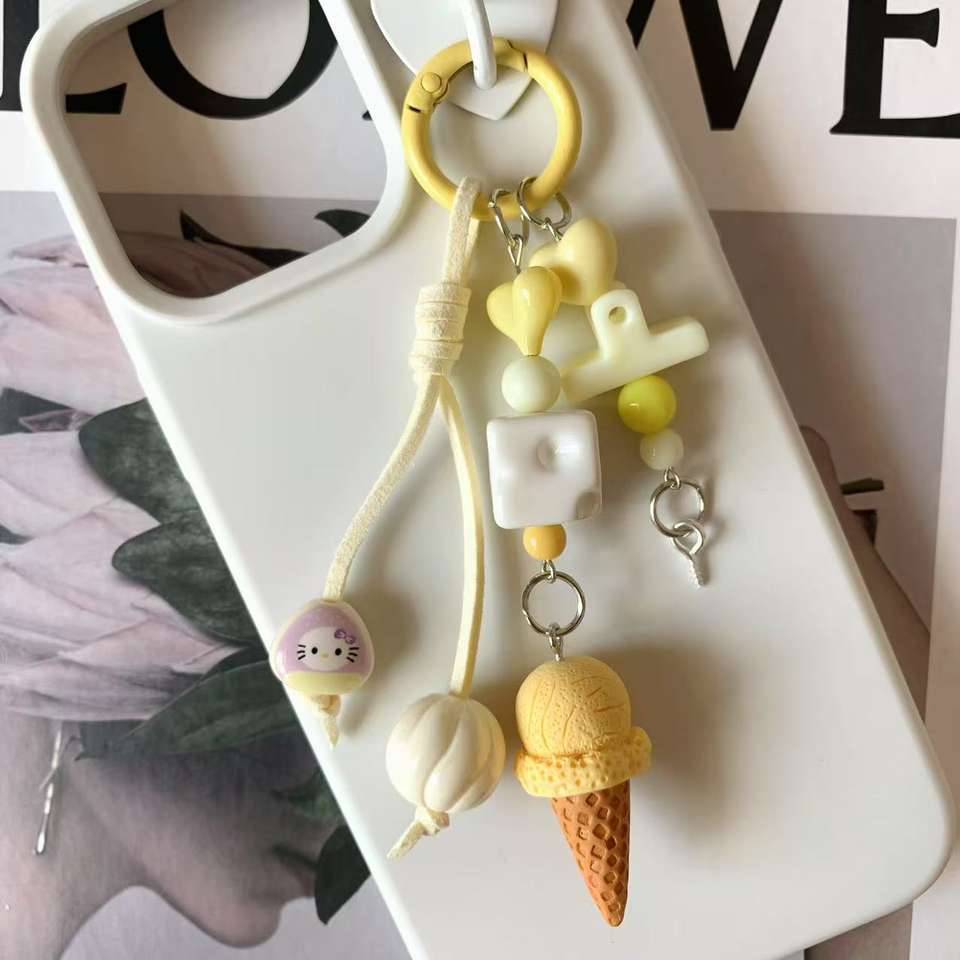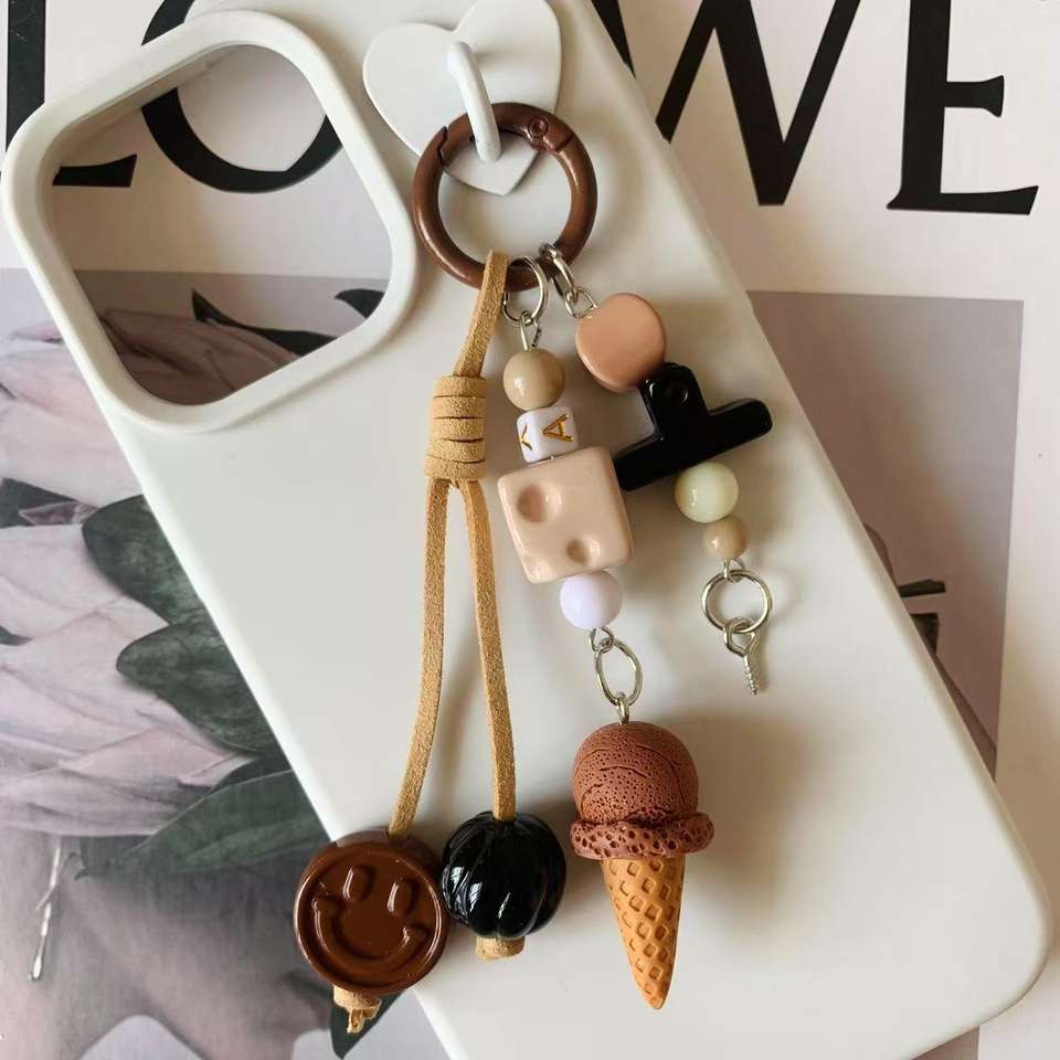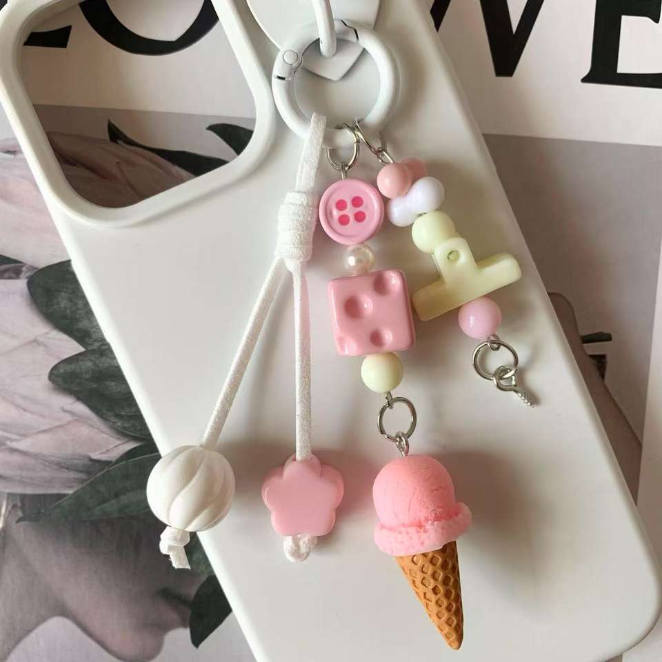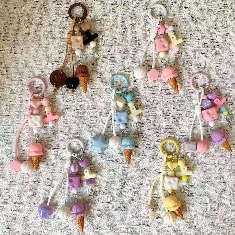 2025 Cute and Sweet Ice Cream Keychain Girl Heart Colorful Beaded Love Pendant Bag Pendant Creative Small Gift Ready to Ship