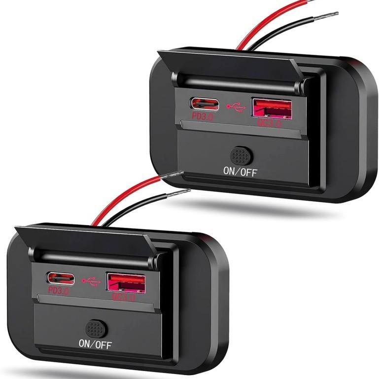 2025 DC 12V 24V Panel Mount RV USB Outlet Car Charger USB and Type-C PD Ports for Cars Bus Boat Automotive Truck Golf Cart