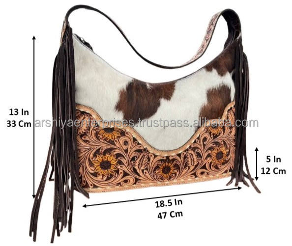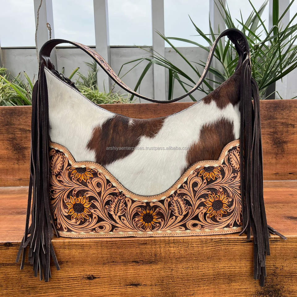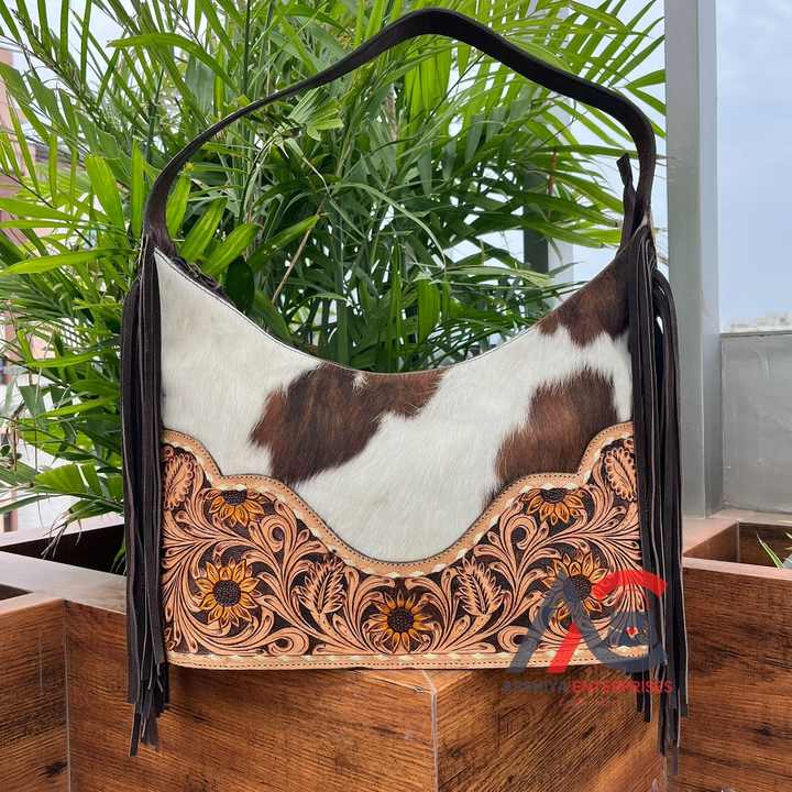 Product name:Hand Tooled Cowhide Leather Fringe Crossbody Bag