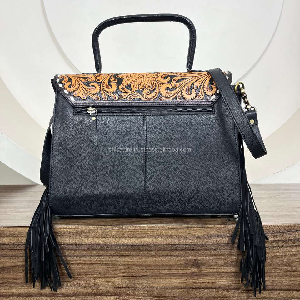 Product name:Genuine Cowhide Hand Tooled Leather Fringe Bag