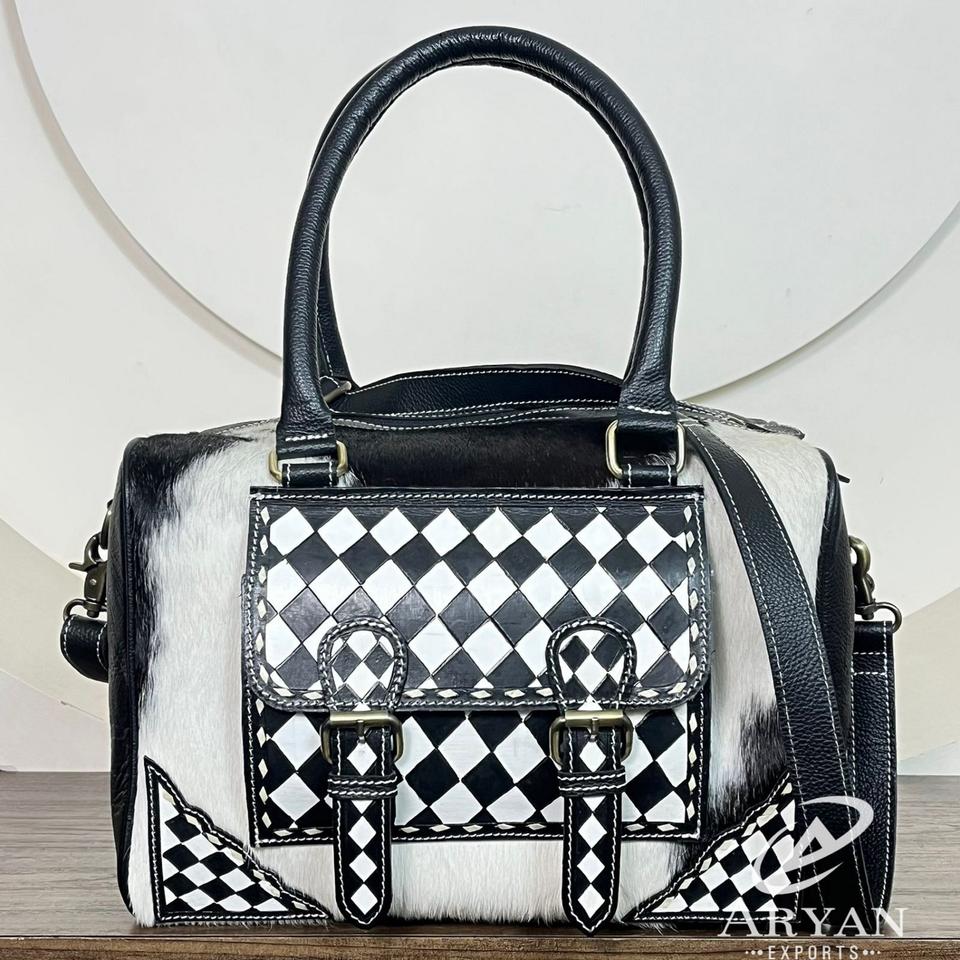 Product name:Hand Tooled Checkered Leather Speedy Duffel Bag