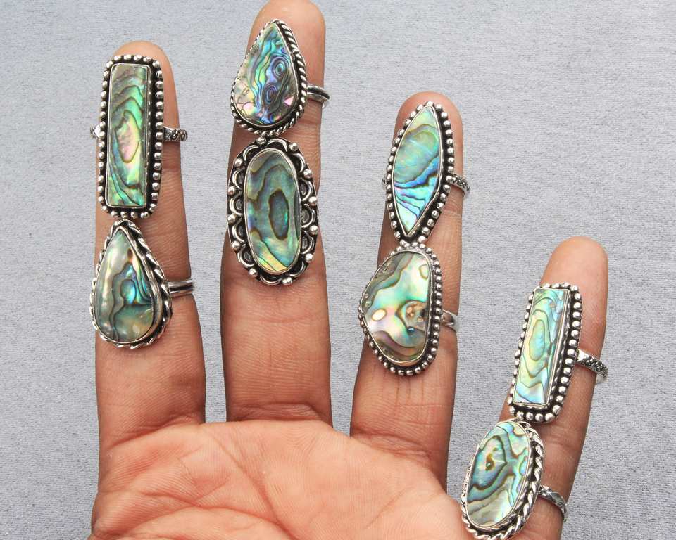 2025 Designer Solid Brass Material Wholesale Lots Mixed Shape Abalone Shell Crystal Gemstone Trending Assorted Rings For Women