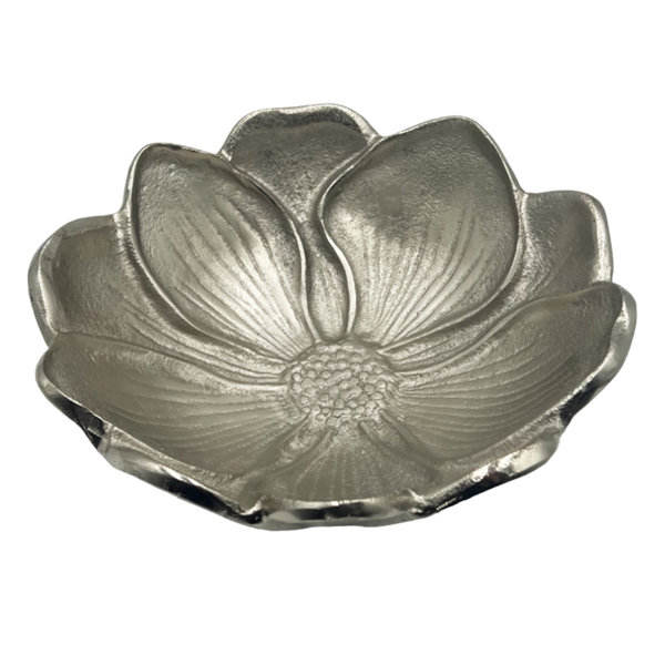 2025 Eco-Friendly Silver Metal Bowl Elegant Flower Design Petal Edges for Kitchenware Events Serving Fruit Snacks Bowls Parties