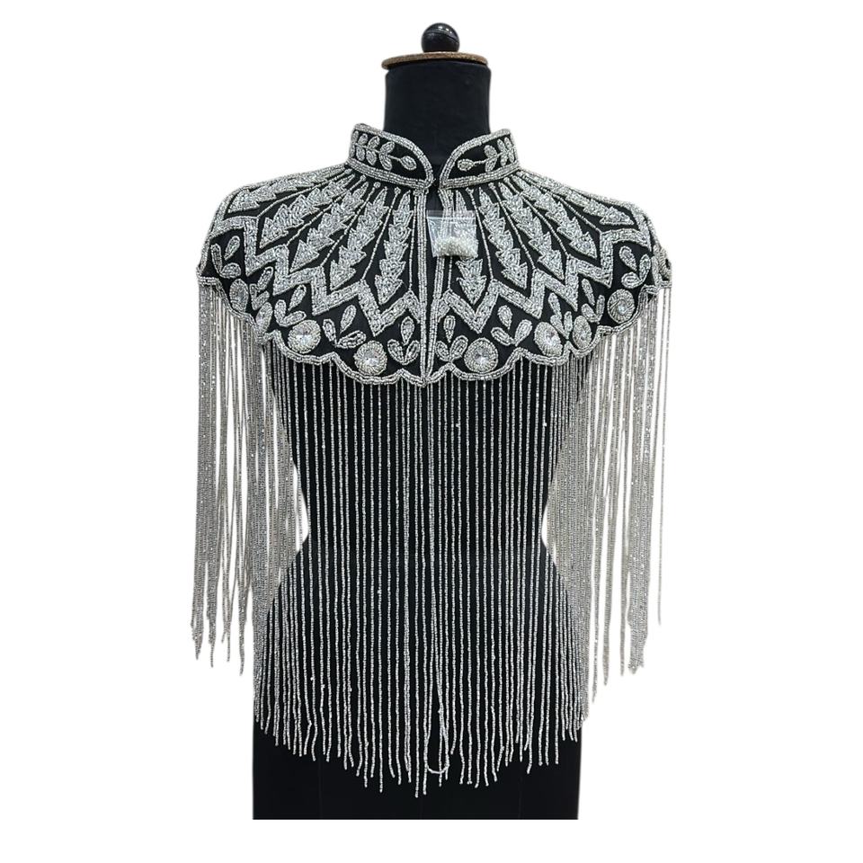 2025 Elegant Black Silver Embellished Fringe Cape Shrug Sequins Cape with 100% Cotton Fabric High Quality Best Prices From India