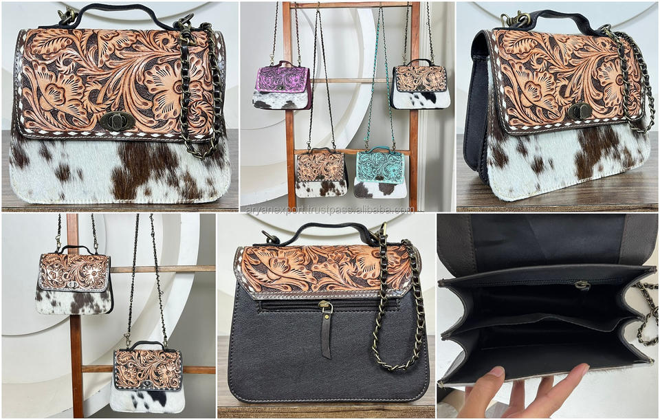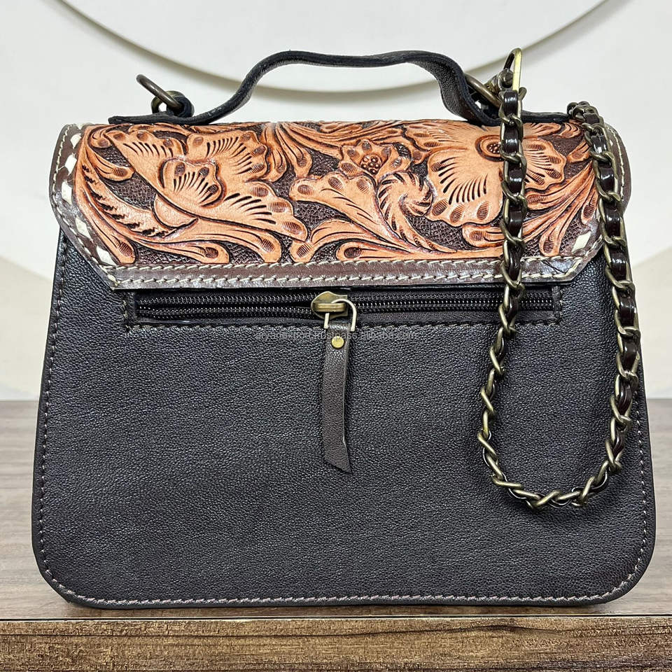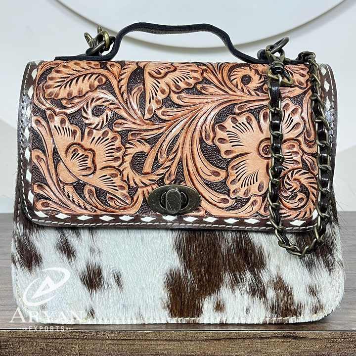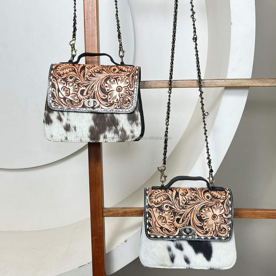 2025 Elegant & Durable Hand Tooled Cowhide Leather Design Sling Bag Twist Lock Western Fashion Trendy Luxury Handbag for Women
