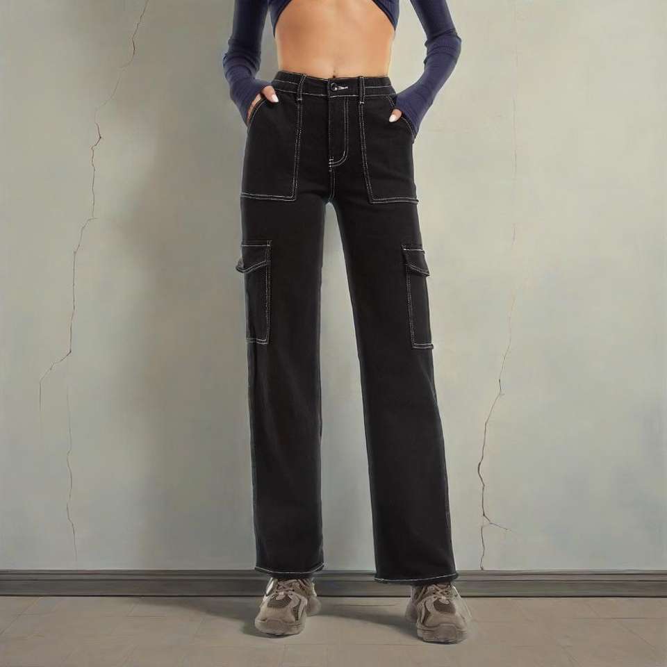 2025 European American Women's Fashion Trendy Loose Straight Leg High Waist Denim Cargo Jeans for Autumn Winter New
