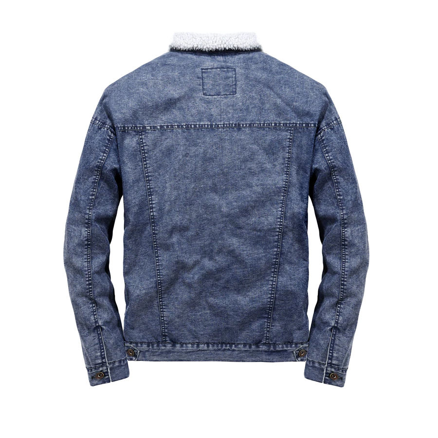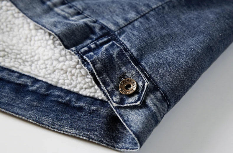 2025 European Size Men's High Street Fashion Slim Denim Jacket with Light Blue Black Wool Lining Winter Warm Coat Thick Material