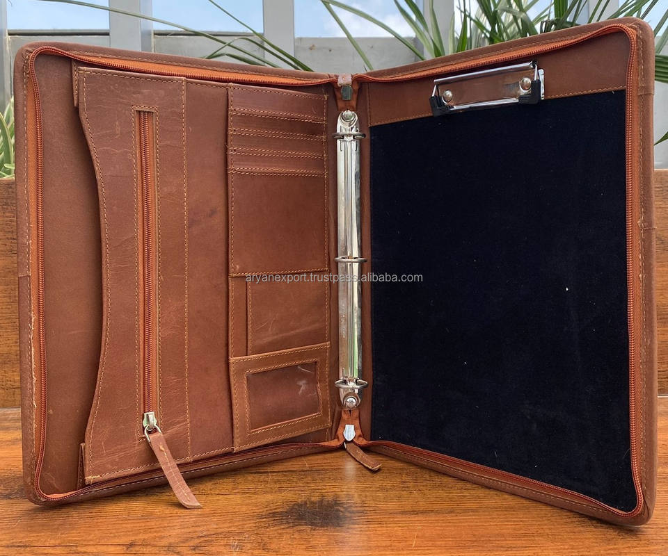 Product Name:Hand Tooled Leather A4 Zippered portfolio Folder