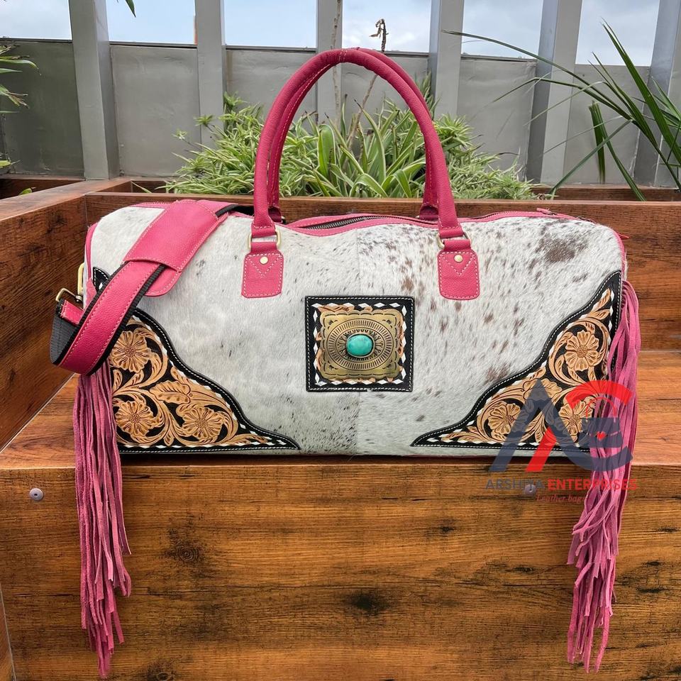 2025 Factory Fashionable High Quality Hand Tooled Cowhide Leather Men & Women Duffel Bag Travel Bag Overnight Weekender Gym Bags
