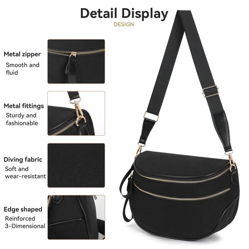 2025 Factory Neoprene PU Handmade Unisex Large Capacity Zipper Waterproof Crossbody Sling Bags