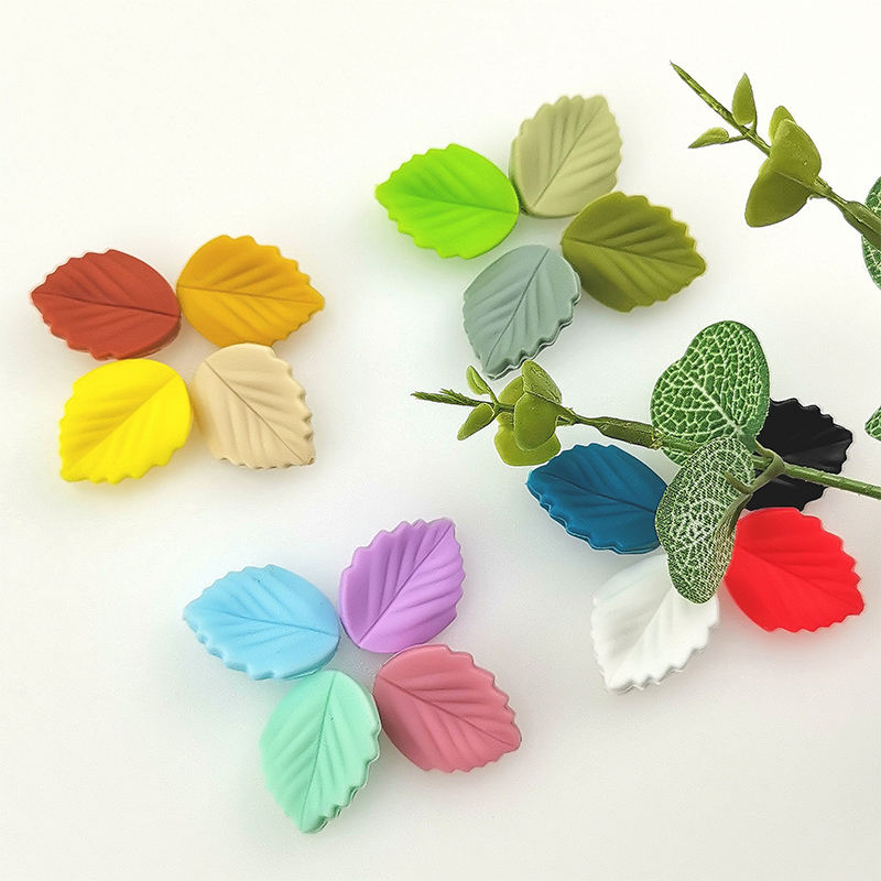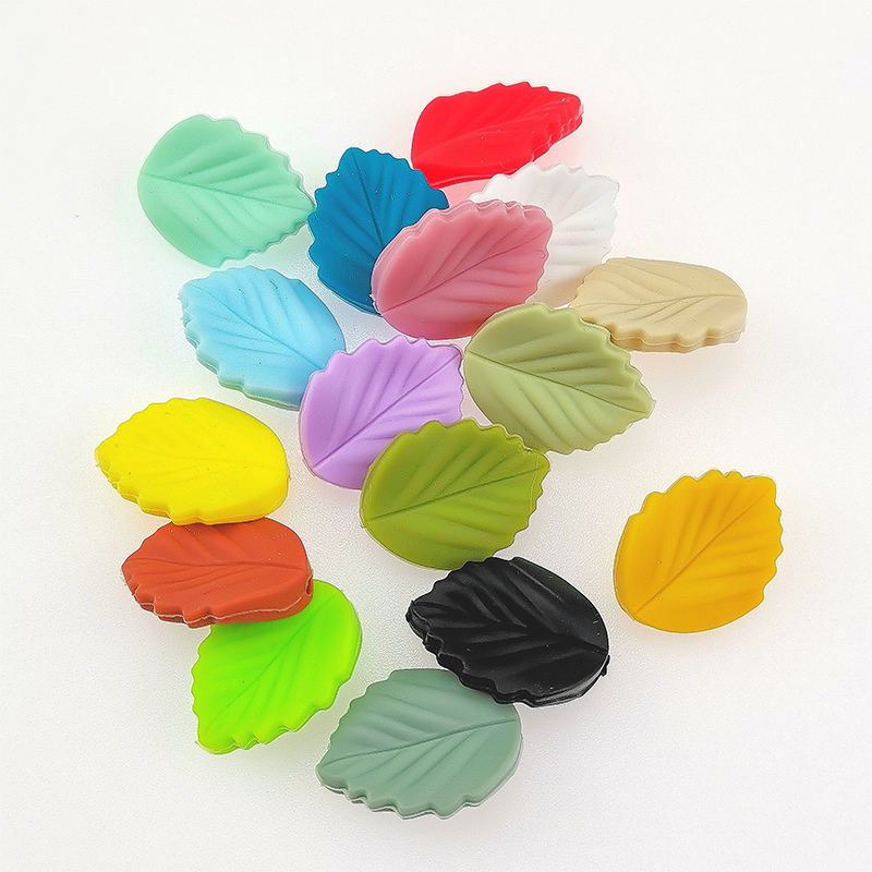 2025 Factory Price Food Grade Silicone Leaf Beads 2.9x2.7cm Non-Toxic Multi-Colors for Baby Teething & DIY Chains
