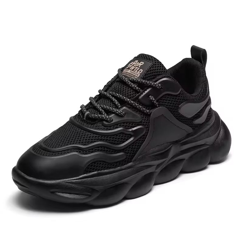 2025 Factory Wholesale Breathable Cushioned EVA Midsole Lace-up Platform Fashion Running Shoes Good Price Low MOQ Custom Black