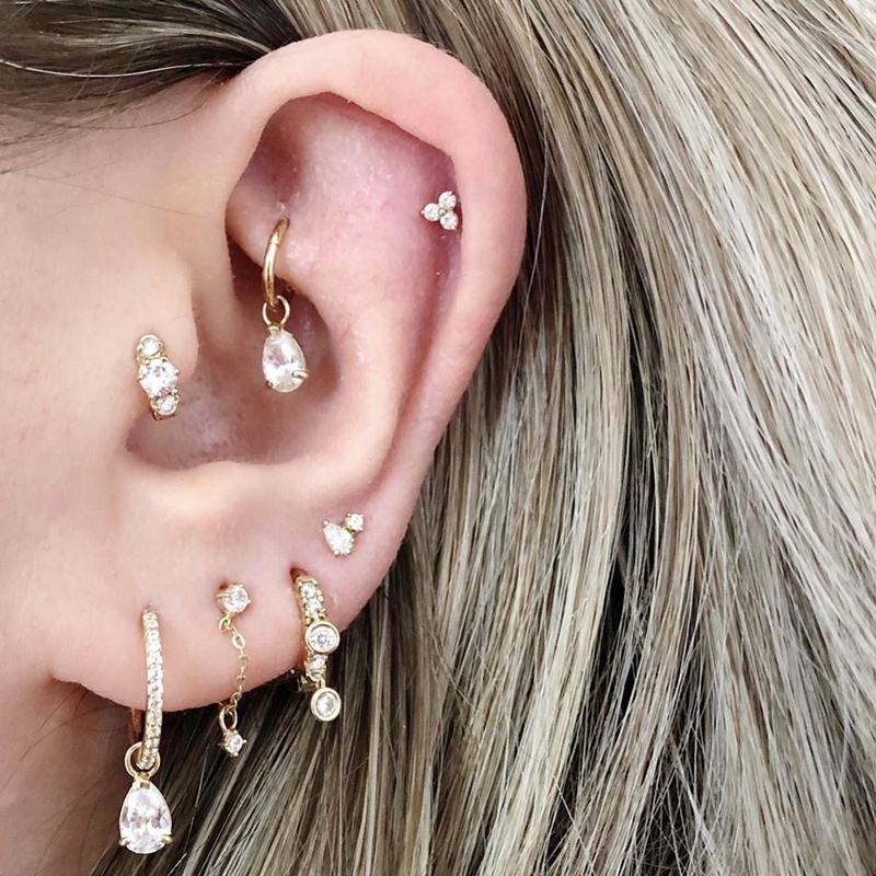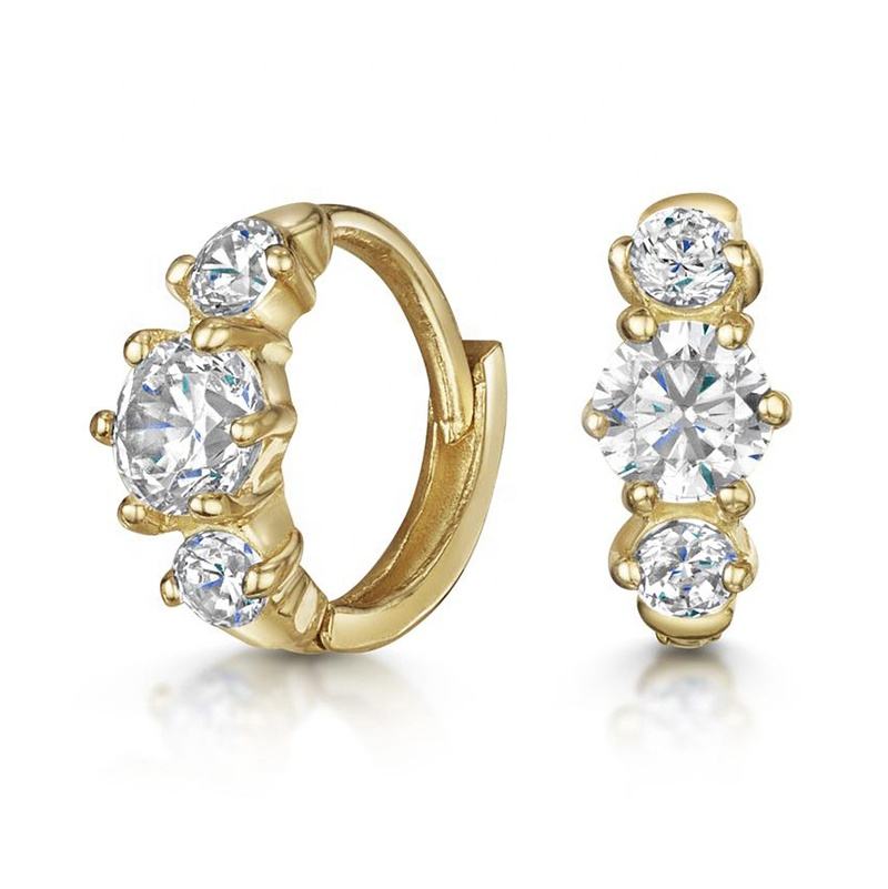 2025 Factory Wholesale Exquisite Fashion Beautiful Exquisite Small Solid 14k Gold Three-stone CZ Circle Earrings