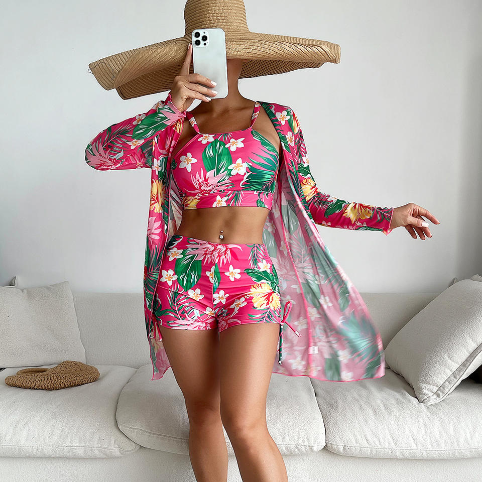 2025 Famous Brand New Arrival r Swimsuit Luxury Printed Mesh Three Piece Cover up Bikini Swimsuit Woman 3 Pieces