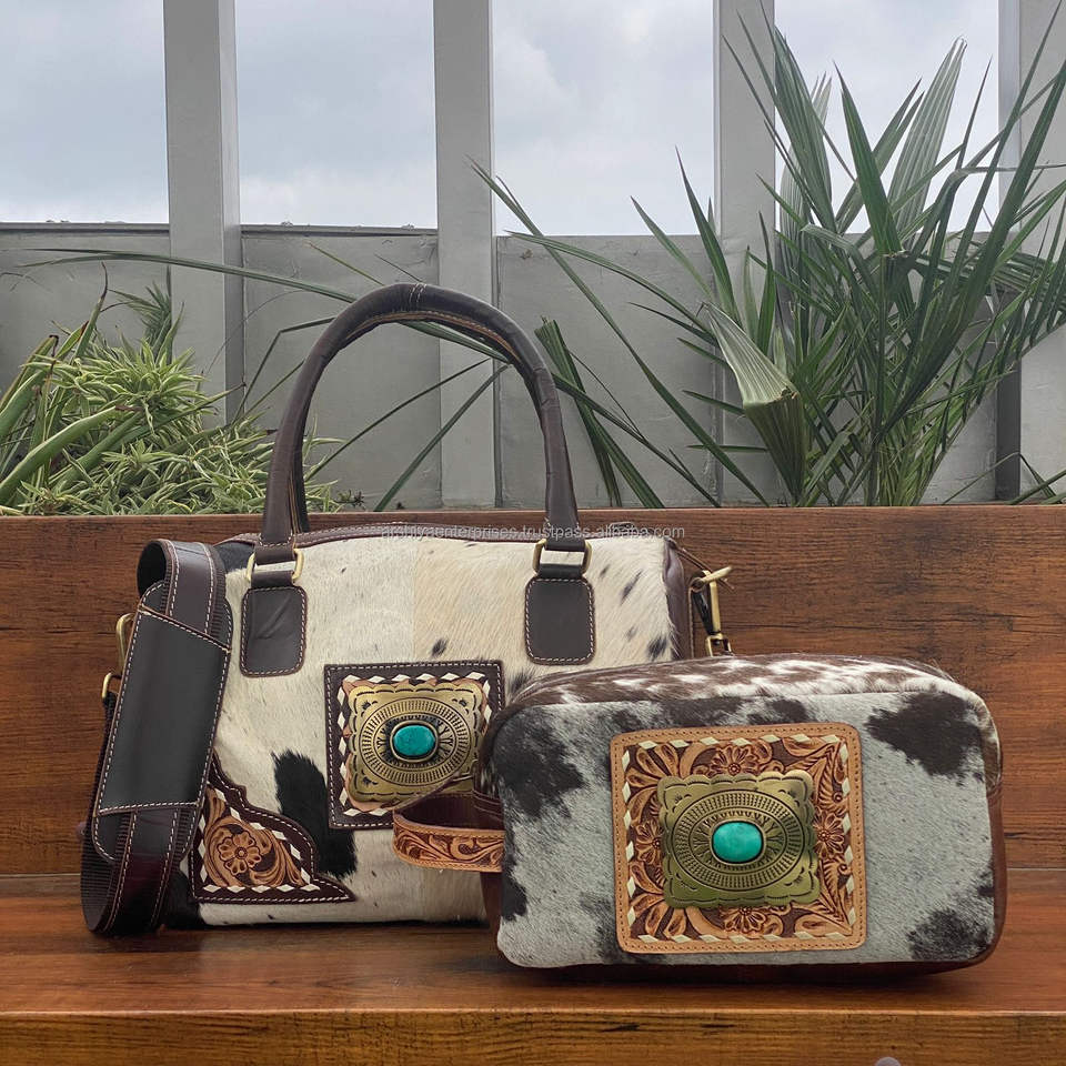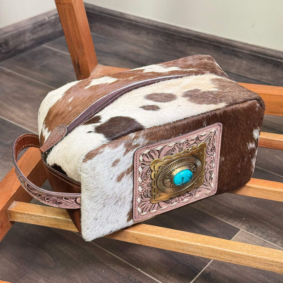 Tooled Cowhide Mini Duffel Bag & Toiletry Bag Combo sets