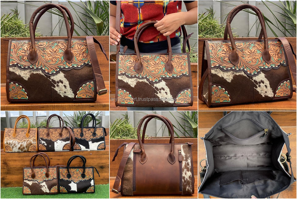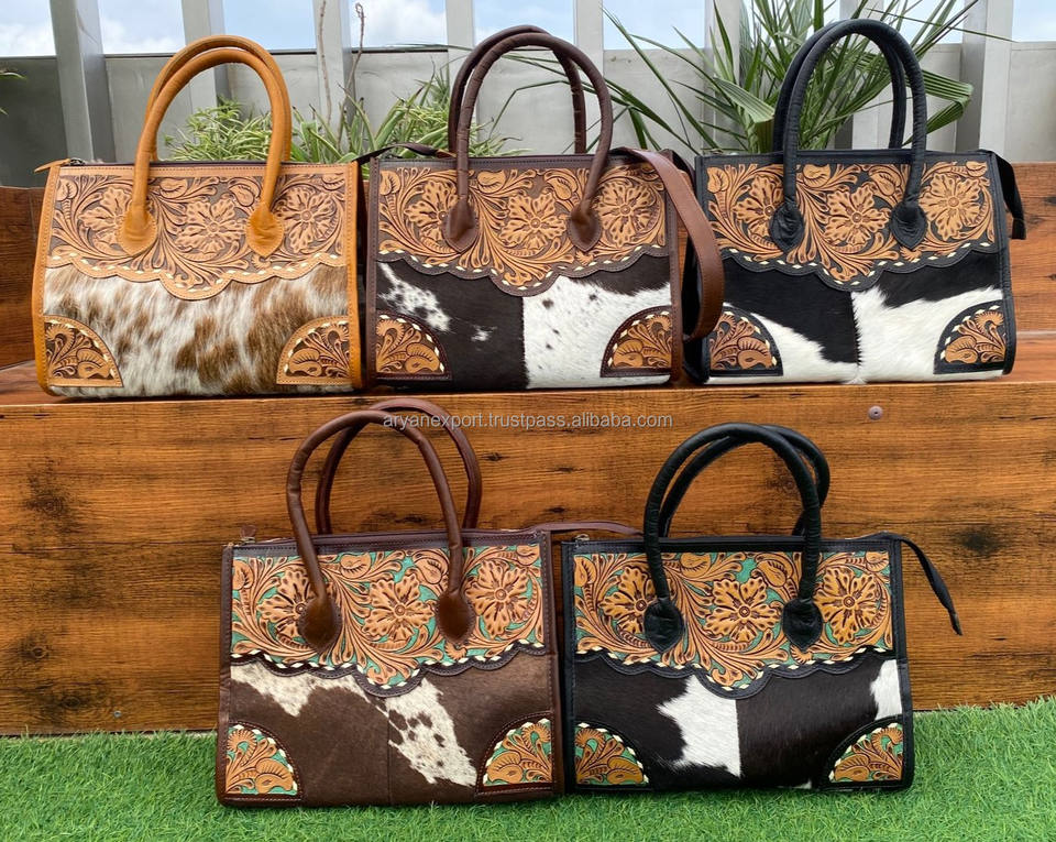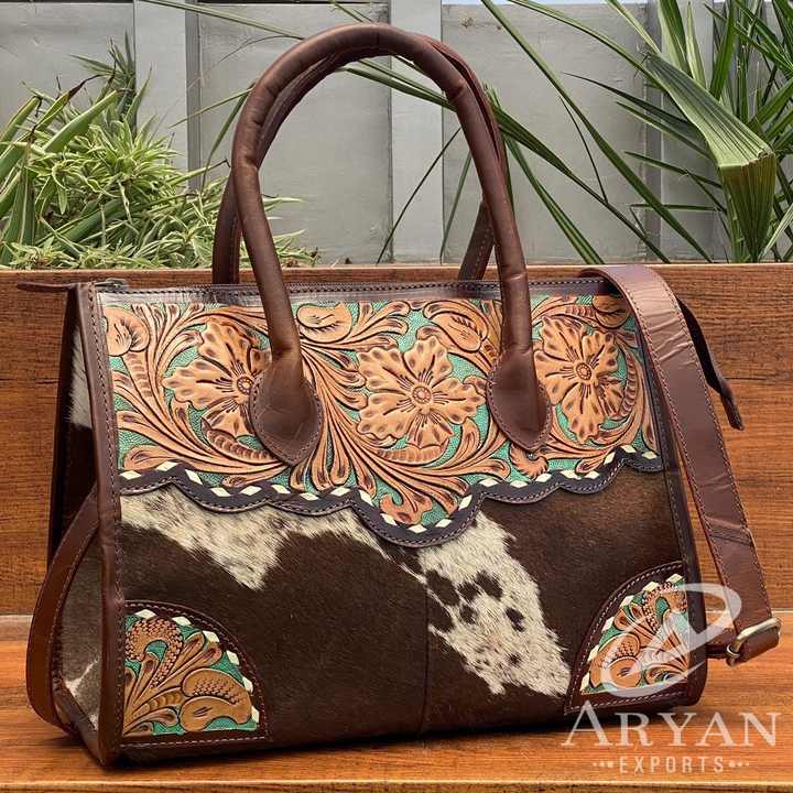 Product Name:Hand Tooled Cowhide Leather Tote Bag