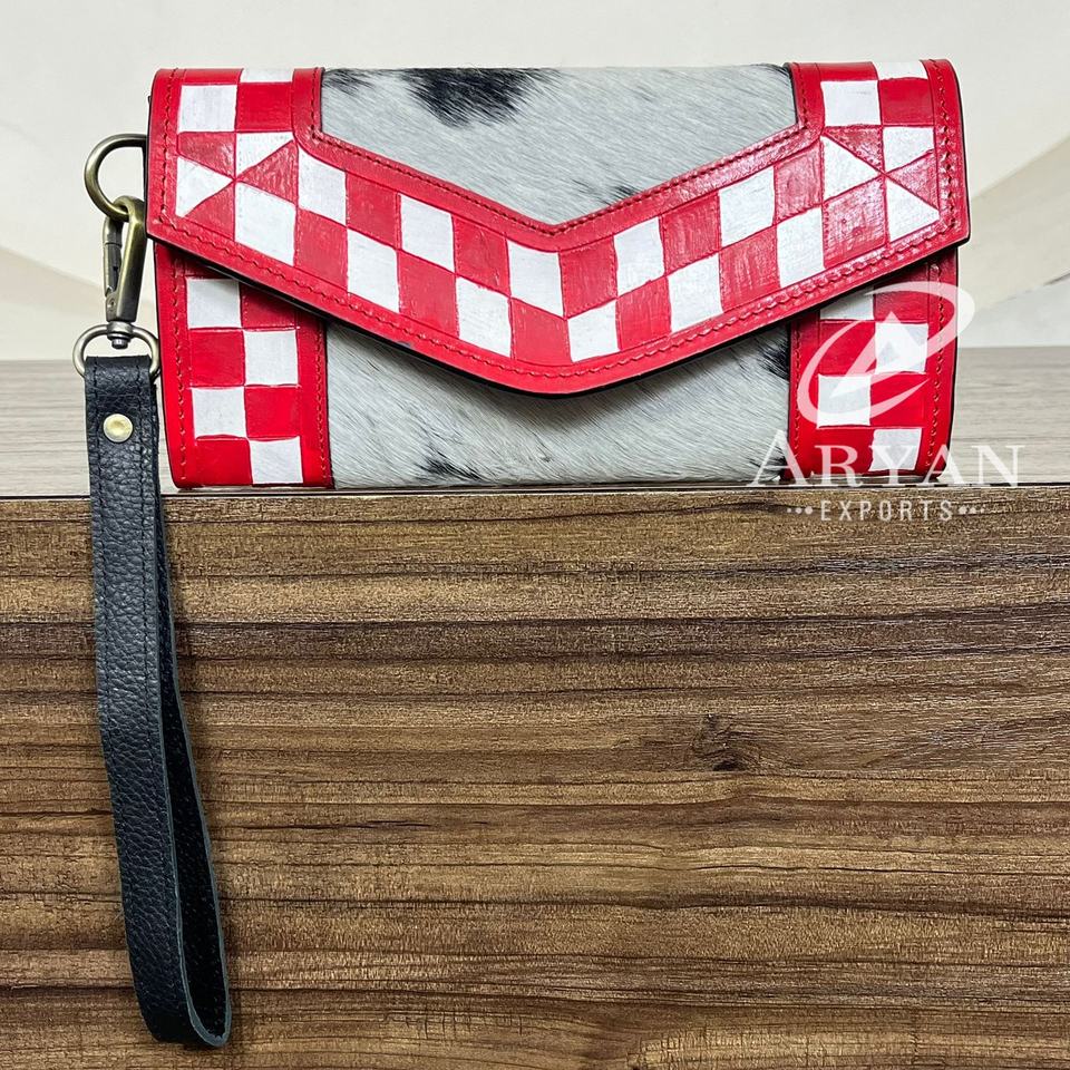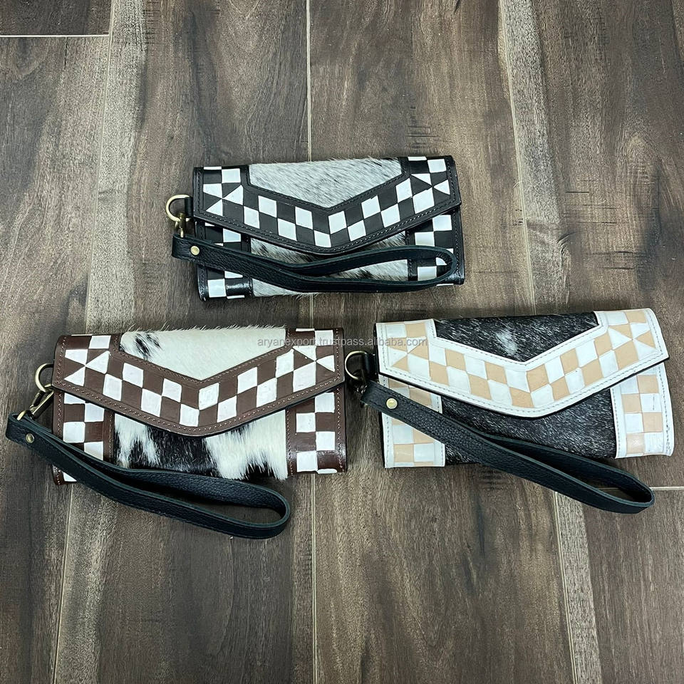 Product name:Hand Tooled Checkered Leather Wristlet Wallet