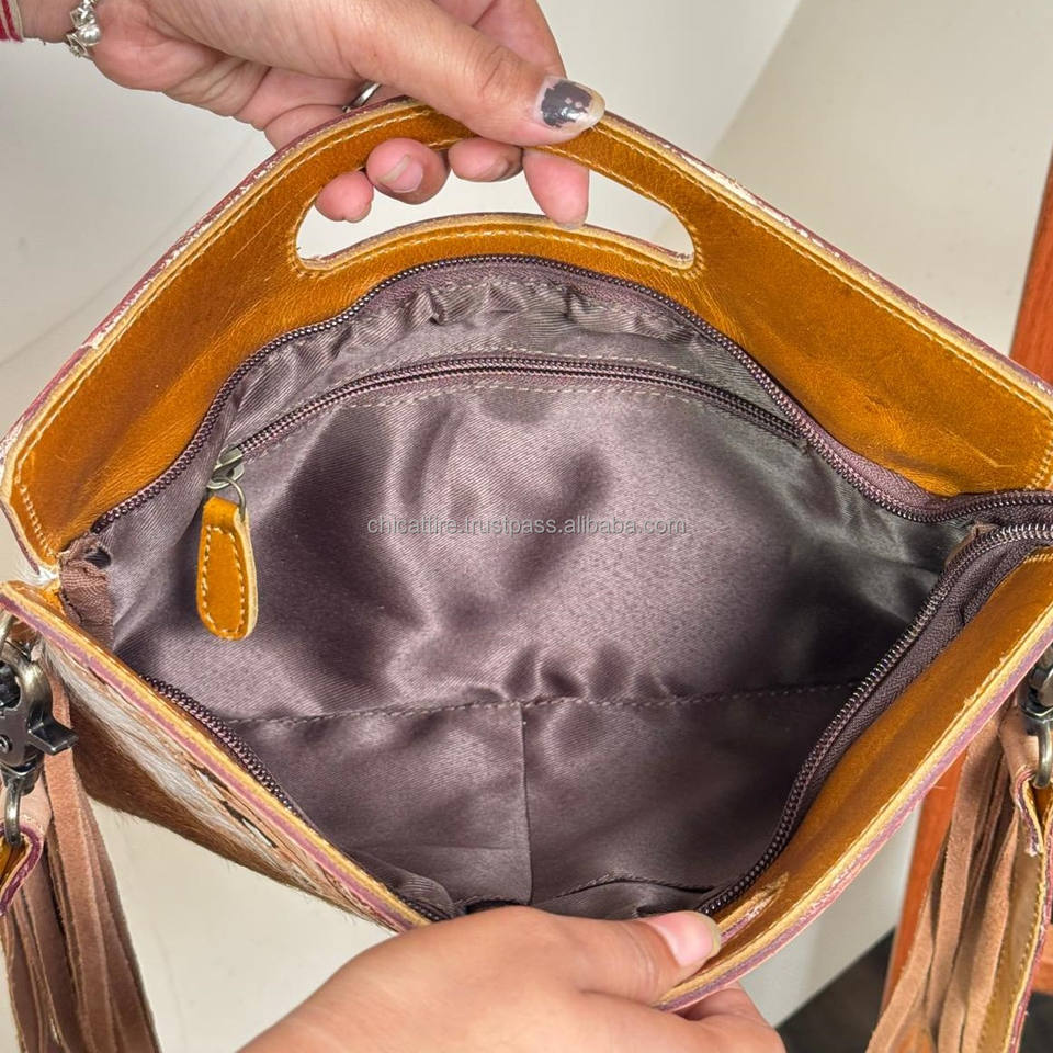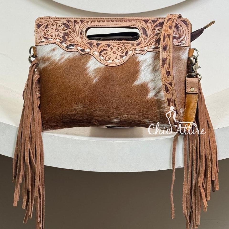 Product name:Hand Tooled Cowhide Leather Fringe Crossbody Bag
