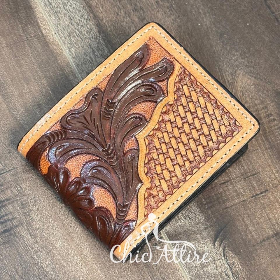 Product name:Crocodile Pattern Hand Tooled Leather Men's Bifold Wallet