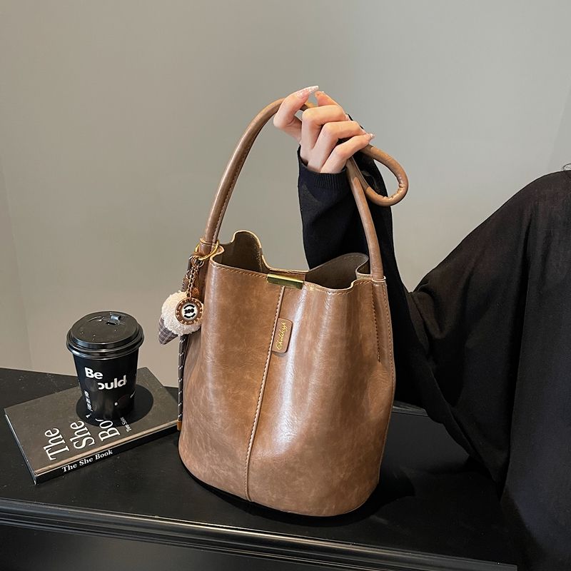 2025 Fashion Soft Leather Women's Bucket Bag Large Capacity Commuter Handbag with Shoulder Strap Urban Style Messenger Bag