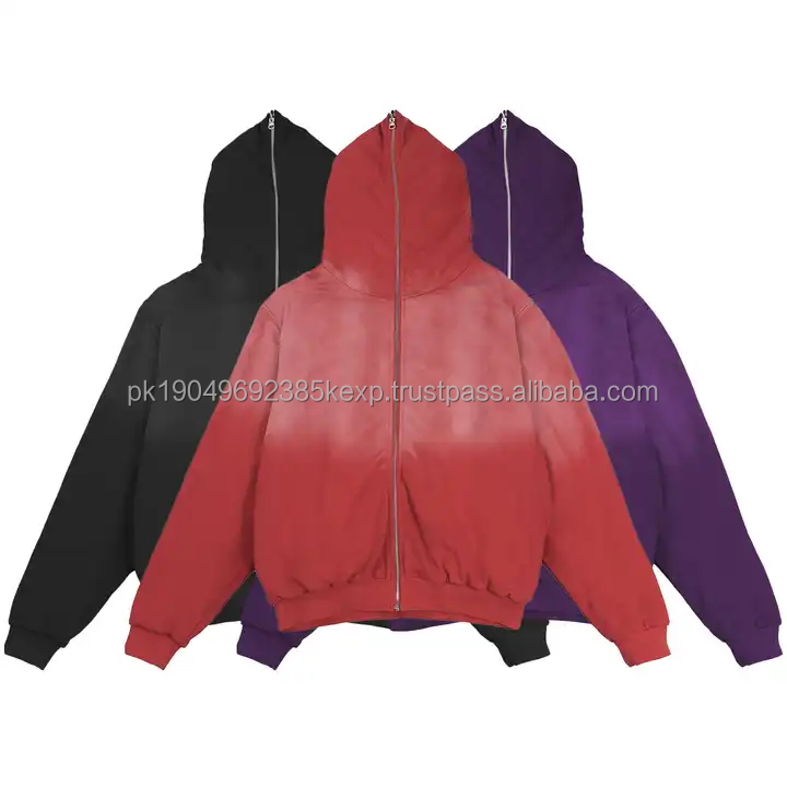 2025 Fashionable Sun Faded Acid wash Full Face Zip Up Blank rhinestone Men sweater Jacket Coat Men's Zip up Hoodie
