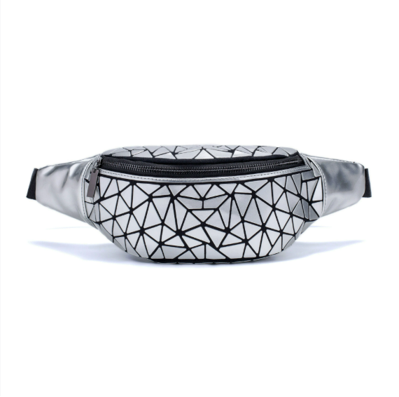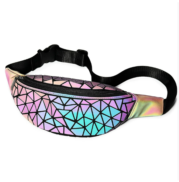2025 Fashionable Waterproof Nylon Sporty Geometric Luminous Holographic Fanny Pack Waist Pack Zipper Closure Outdoor Hip Bag