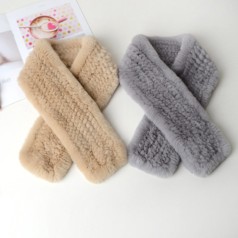 2025 Fashionable and simple Rex rabbit fur Woven Scarf for Women's winter Warmth Fur Scarf Cross Double-sided Manufacturer