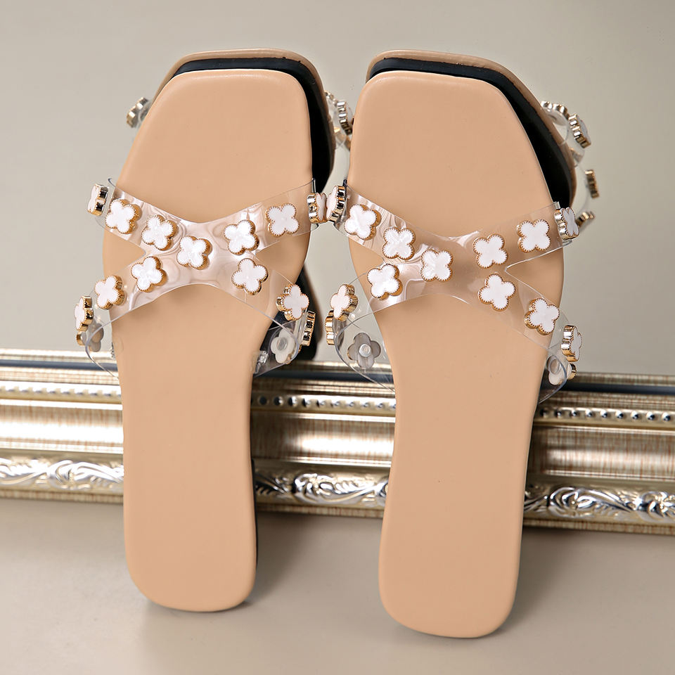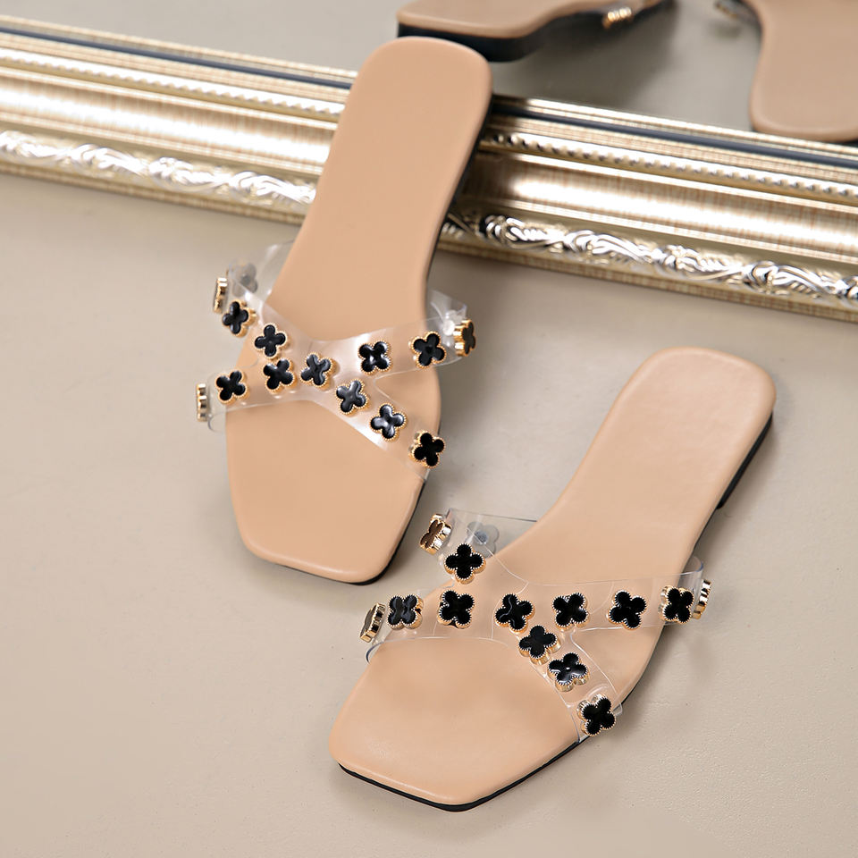 2025 Flats Plus Size Ladies slippers Sandals New Fashion Simple Elegant Rivet Decorated Flat Sandals
