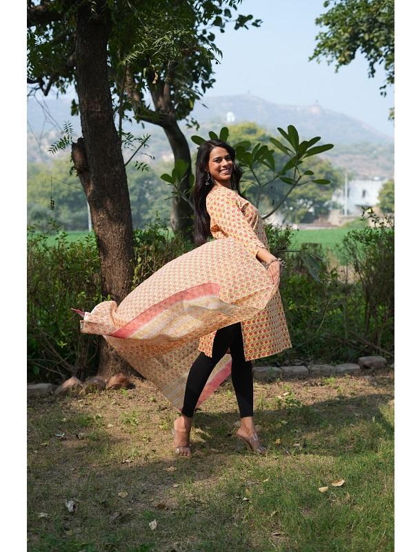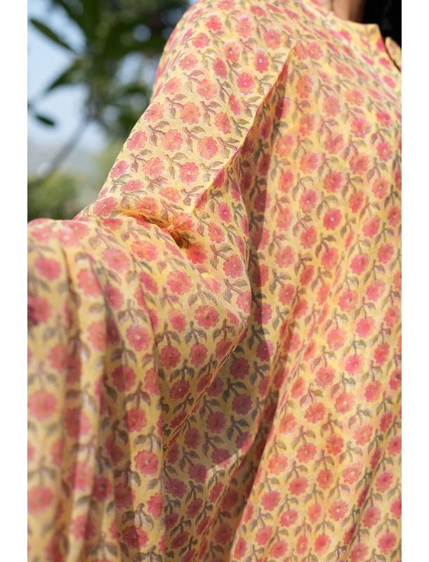 2025 Floral Print Ladies Cotton Kurta Yellow Pink Woven Ethnic Wear Eco Friendly Washable Dress