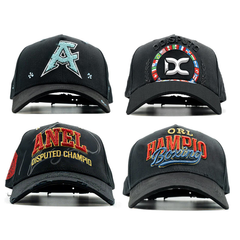 Logo position:brim/visor, front panel, Right Panel, back curved part, Left panel