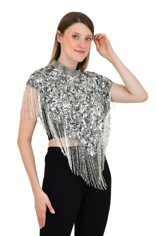 Net Fabric with Handmade Embroidery Beads Sequins WorkMaterial