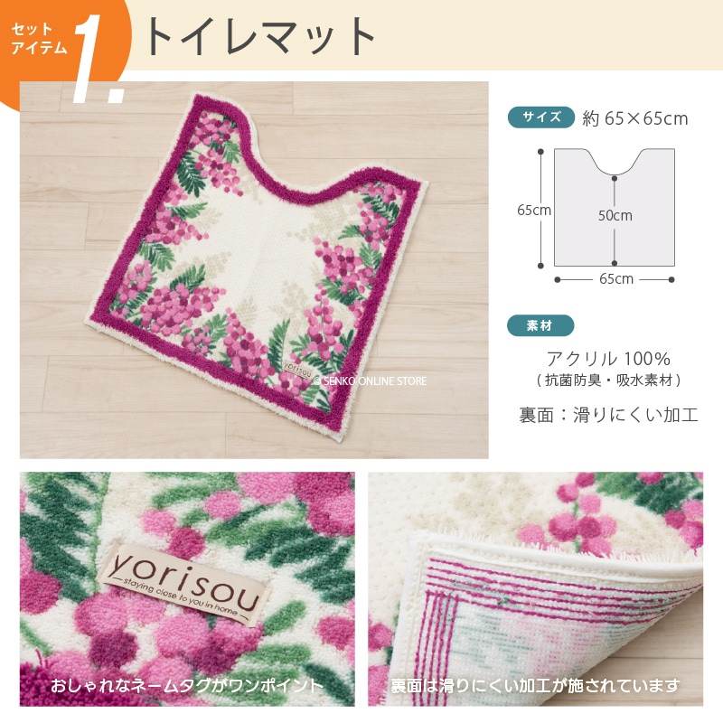 2025 Fukubukuro SDS Yorisou Mimosa Pink Bathroom Set 4-Piece Including Toilet Mat Multi-Lid Cover Paper Holder Cover Hand Towel