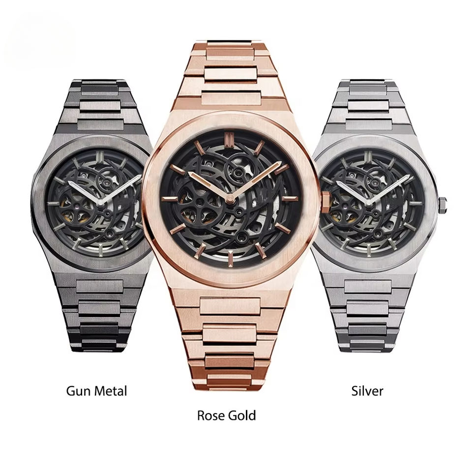 2025 Fully Automatic Men's Stainless Steel Skeleton Mechanical Watch Multi-Functional OEM ODM Custom Logo Luminous Hollow Made