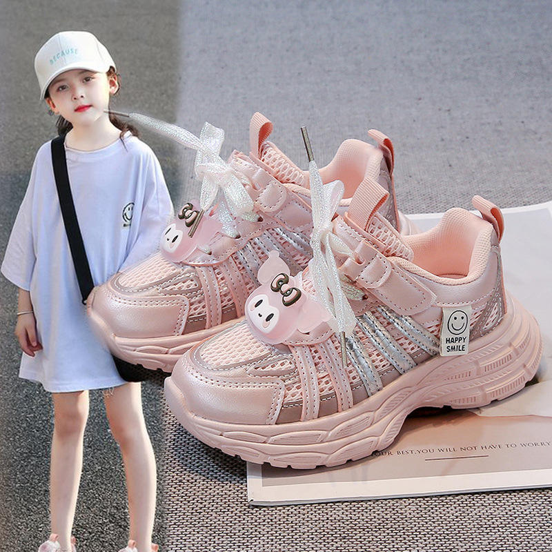 2025 Girls' Sports Shoes Mesh Breathable Dad Casual Runners Soft Sole Spring Autumn Kids' Velcro Closure PU Insole Cartoon