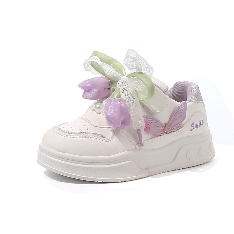 2025 Girls' White Soft-Soled Casual Sports Shoes New Spring Autumn Fashion for Princes Medium Large Size