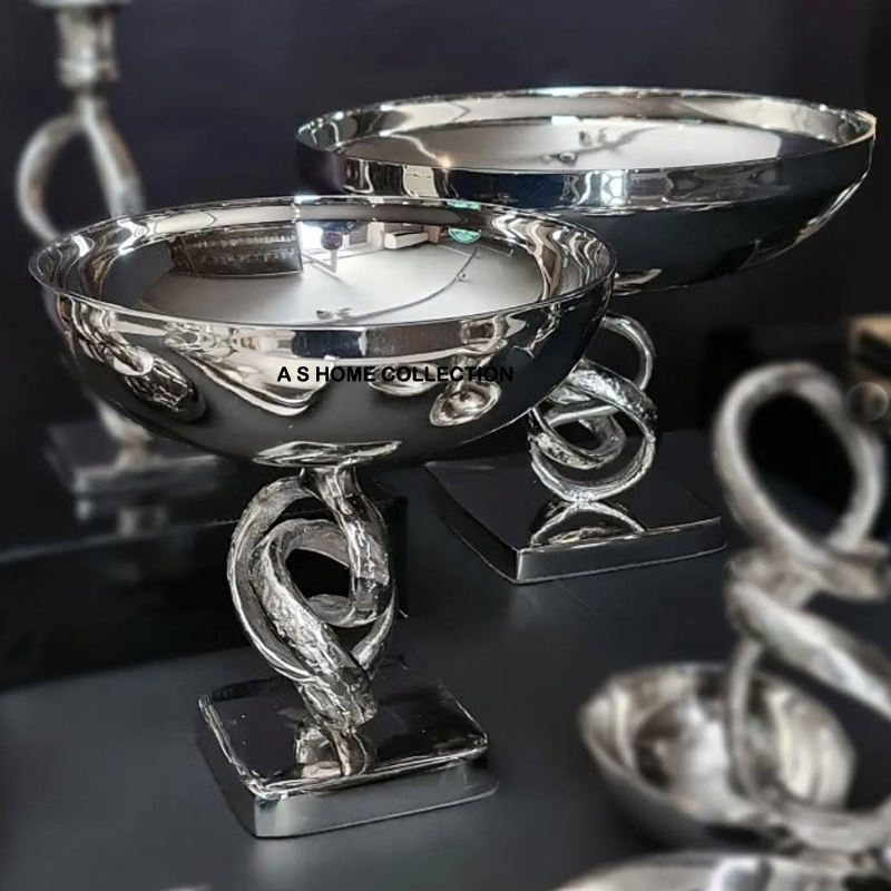 2025 Glossy Nickel Plating Handcrafted Silver Bowl Metal Made Home Office Kitchen Decor High Quality Metal Designer Fruit Bowl