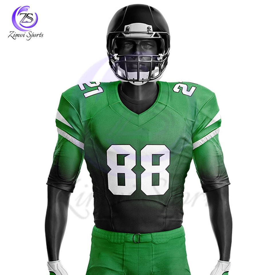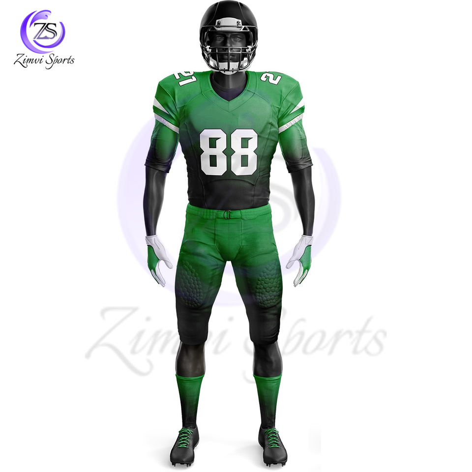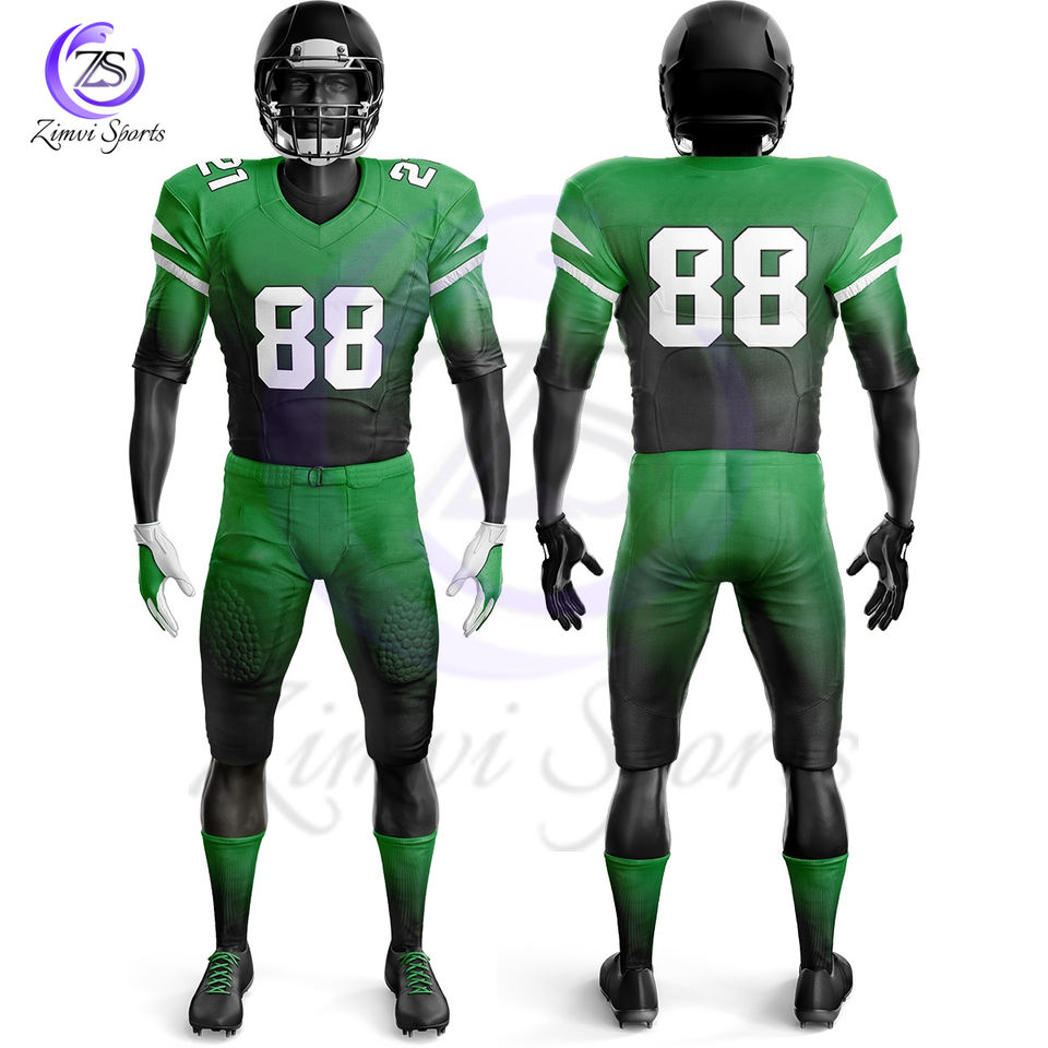 2025 Green Black Color Unique Design Youth Practice Sports Wear Uniform Latest American Style Football Jerseys With Shorts