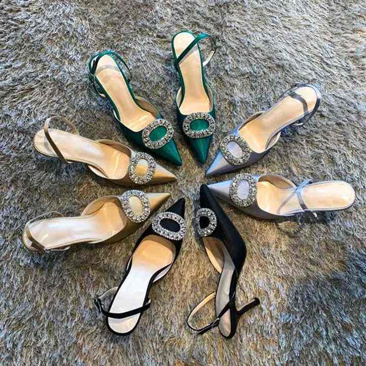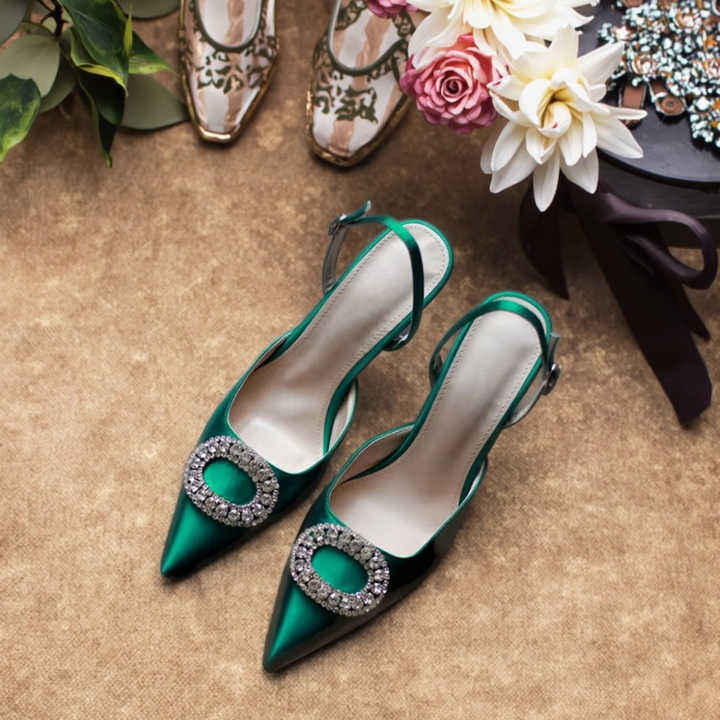 2025 Green Designer High Heel for Woman Pointed-Toe Semi Covered Wedding Shoe with Rhinestone Detail Elegant Summer Hee