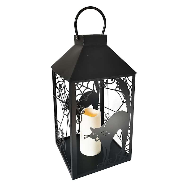 2025 Halloween Matte Black Metal Candle Holder Special Cat Cutout Design Silver Lantern for Christmas Weddings Home Decorations