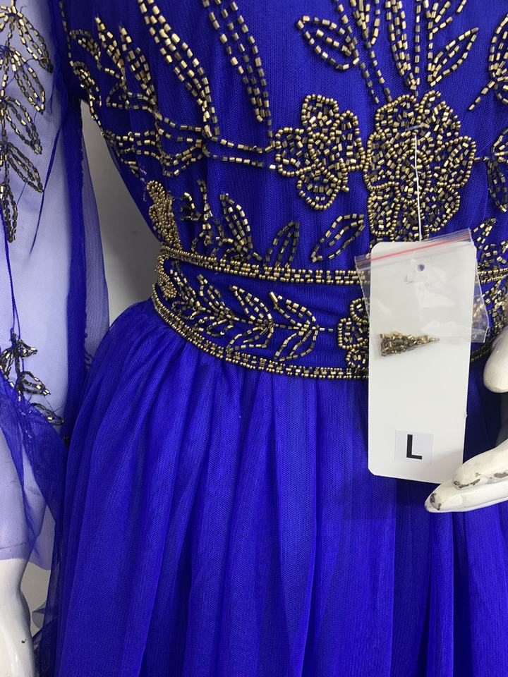 2025 Hand-Beaded Party Dress Long Flare Sleeve Cocktail Party Wedding Birthday Evening Gold Beads Work for Women Dress Ball Gown
