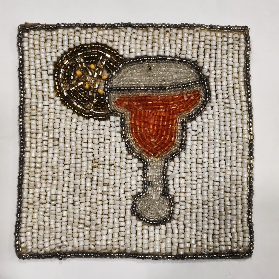 2025 Handcrafted Beaded Coaster with Martini Glass Design Elegant Round Red and Gold Table Accent for Bars and Parties