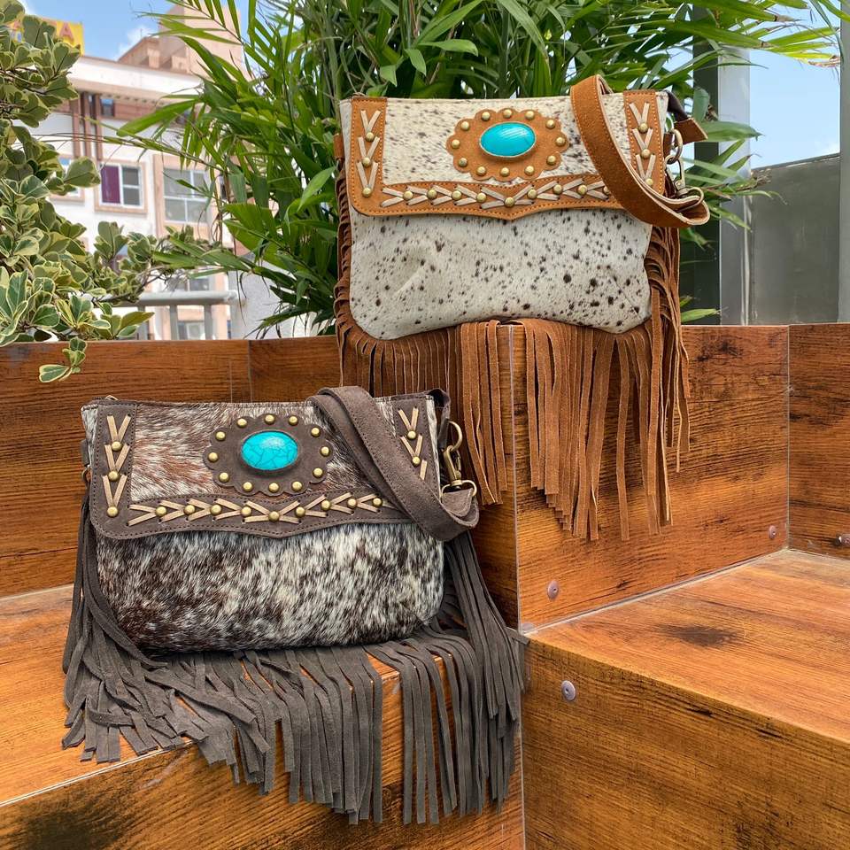 2025 Handcrafted Cowhide Leather Fringe Crossbody Bag With Turquoise Stone Western Boho Sling Shoulder Bag For Women Daily Use