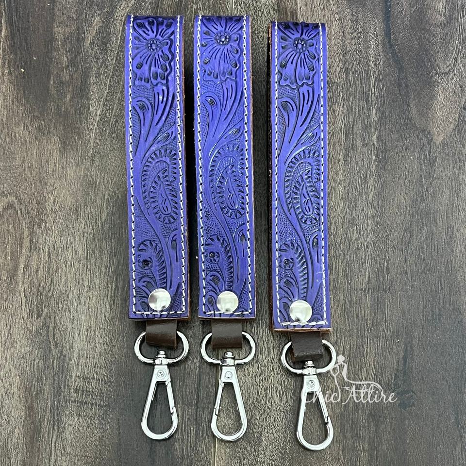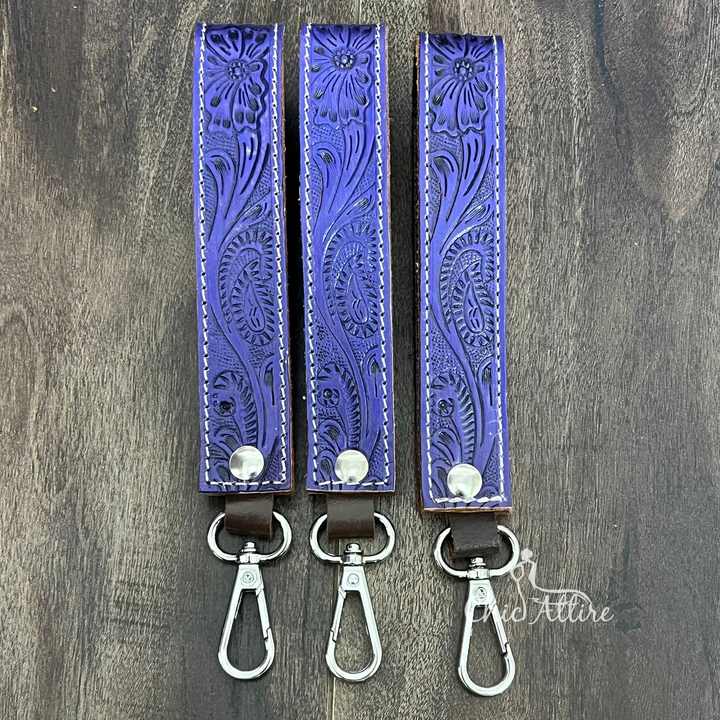 2025 Handcrafted Tooled Cow Leather Wristlet Keychain Luxury High-End Western Style Durable Carabiner Cute Key Clip For Women