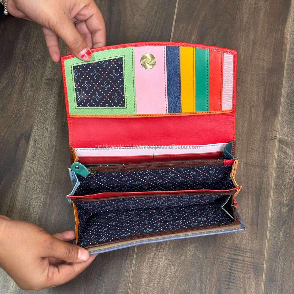 2025 Handmade Stylish Recycled Leather Unique Colorful Clutch Multi Colored Women Hot Sale Purses Beautiful High Quality Wallets