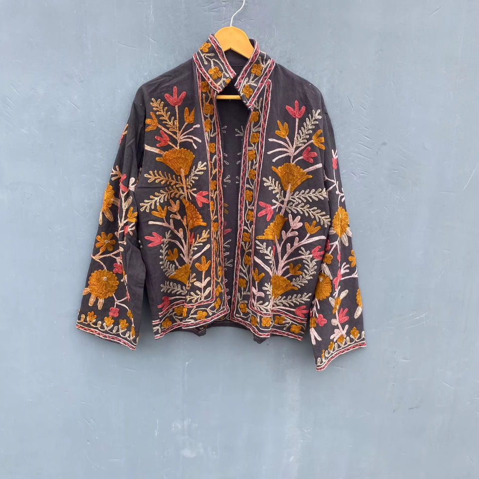 2025 Handmade Women's Winter Jacket with Suzani Embroidery Short New Design Fabric Coat Featuring Robe Style and Design Jacket