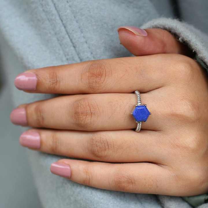 2025 Hexagon Lapis Lazuli Ring 925 Sterling Silver Hexagone 7x7mm Solitaire Promise Ring Minimalist Fine Ring Jewelry For Women