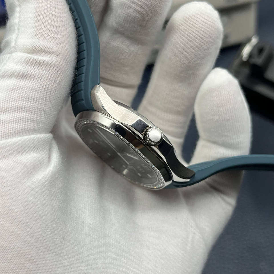 2025 High-End Dark Blue Irregular Brick Inlaid Men's Mechanical Watch with Rubber Strap, Waterproof Casual Watch