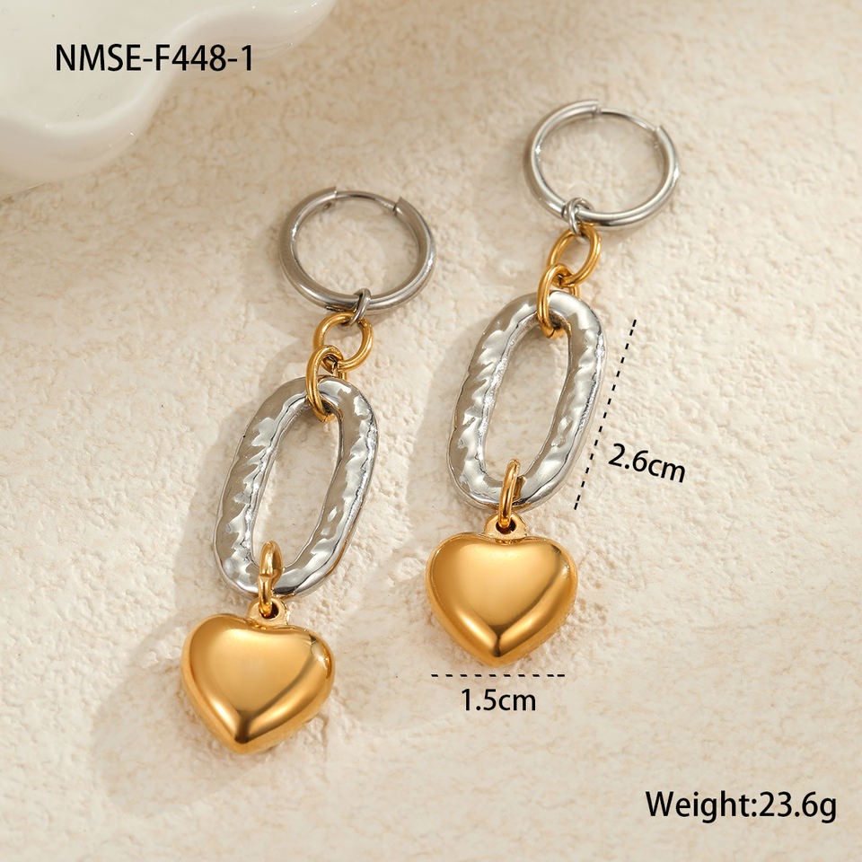 2025 High Quality European American Style Two-Tone Heart Drop Earrings Non Tarnish Stainless Steel Hot Sale INS Fashion Jewelry
