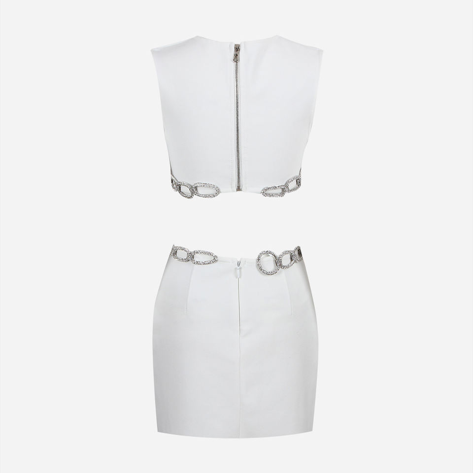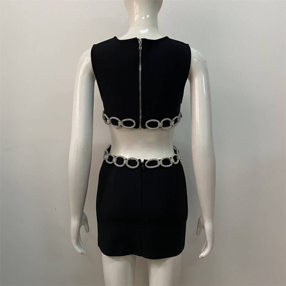 2025 High Quality Hot Fashion Women Sexy High Waist Flower Beaded Bandage Two Pieces Dress Set